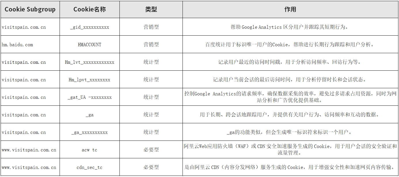 通过访问 visitspain.com.cn,您可能会注意到一些 Cookies 与 visitspain.com.cn 无关。